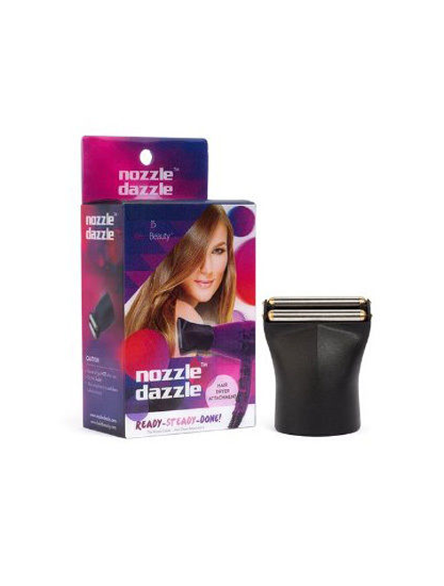 • The Nozzle Dazzle is a revolutionary hair styling device that will change the way you blow dry your hair forever! Its 360 degree metal rollers heat up fast with help from your blow dryer, and glides evenly and effortlessly over the hair, creating the perfect blowout.Gone are the days of going over the same piece of hair way to many times, and then re-doing it with the flat iron again and again. Nozzle Dazzle will make the hair stylist’s job easier and allows you to become your own stylist from the comfort of your own home.Attaches to most conventional hair dryers.